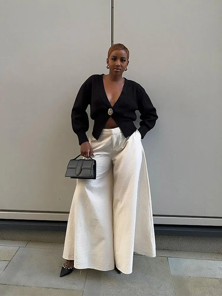 V-neck Single Button Sweater